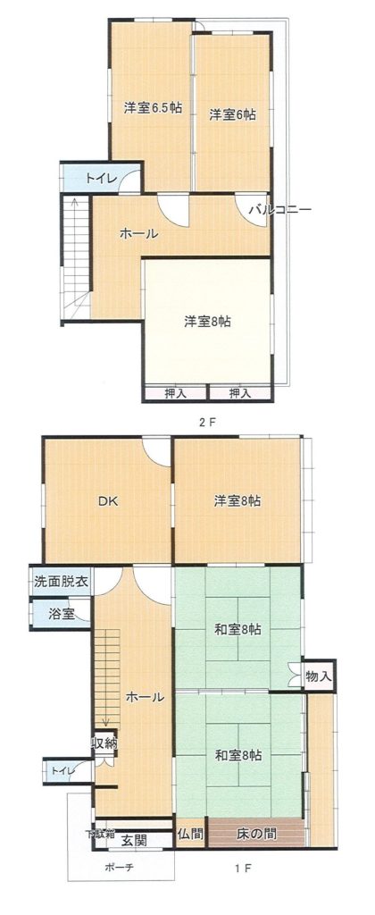 和室8畳 1階 2室 洋室8畳 1階 1室 DK8畳 1階 1室 洋室8畳 2階 1室 洋室6.5畳 2階 1室 洋室6畳 2階 1室 |