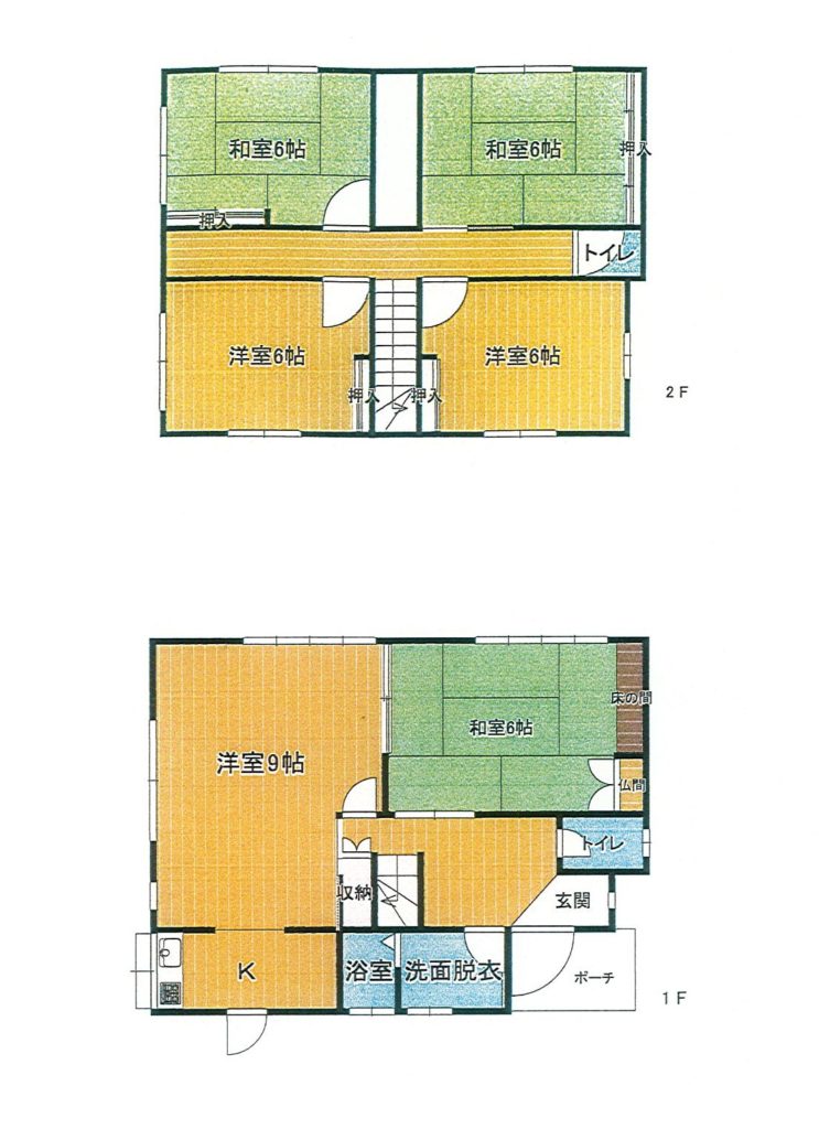 和室6畳 1階 1室 洋室9畳 1階 1室 和室6畳 2階 2室 洋室6畳 2階 2室 K1階 1室